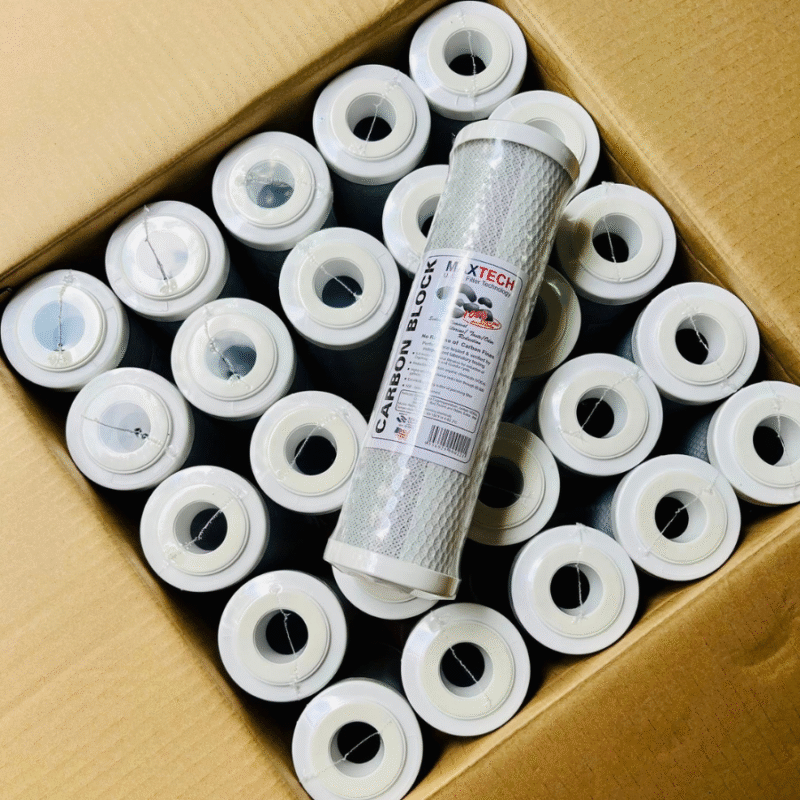 Lõi lọc nước số 3 CTO MAXTECH 10 inch làm từ than hoạt tính gáo dừa nén ép, loại bỏ clo, mùi, màu, kim loại nặng và tạp chất hữu cơ, giữ khoáng chất có lợi. Phù hợp lọc nước máy, nước giếng, nước nhiễm đá vôi. Thay lõi sau 2,5–6 tháng.